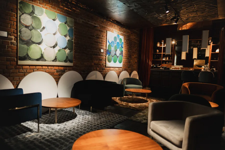 „Tohle je studio. Mám tady svou kuchyň a v rámci degustace se jedná o čtvrtou kapitolu. Je to menší replika mého obýváků. Návštěvník by si měl připadat, jako bych ho pozval k sobě domů,“ ukazuje Christian prostor, který se nachází o patro výše, byť stále ve sklepení. Je to místo pro povídání si, vydechnutí, které nabízí pohodlné sezení a zdobí ho další umělecká díla. Návštěvníci by tu měli strávit 20 až 30 minut, ale někdy tu rozjímají i 2 hodiny.