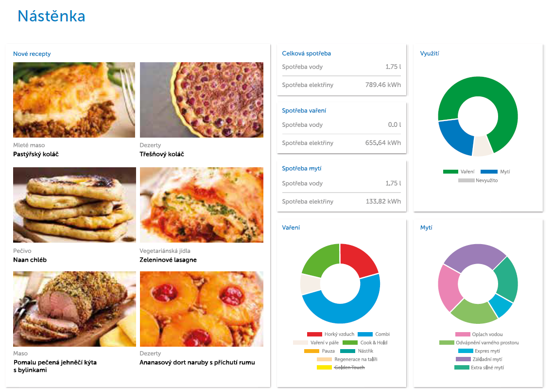 Jako bonus nabízíme také online kuchařku se zásobou receptů z celého světa. Srozumitelný popis, seznam ingrediencí včetně parametrů vaření na konvektomatu „included.“ Několika kliknutími nahrajete nové recepty do připojeného přístroje. |