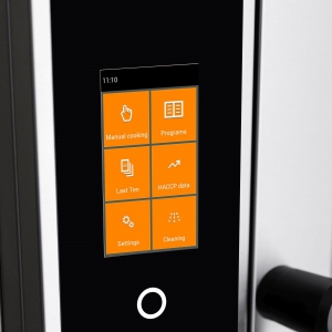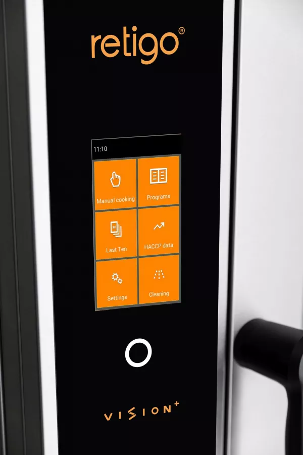 Nový Orange Vision Plus má jednoduché a velmi přehledné ovládání s dotykovou 7'' obrazovkou. Tento osvědčený způsob ovládání (inspirovaný ovládáním konvektomatů Blue Vision) je neskutečně intuitivní, reaguje velmi rychle a na úvodní obrazovce zobrazuje všechny důležité parametry, které jsou pro uživatele takřka nezbytné. K funkcím jako je Posledních 10, HACCP data, Programy nebo Automatické mytí, lze přistupovat přímo ze základního zobrazení a na rozdíl od klasického Orange je standardní výbavou "Pluska" také 99 programů s 9 kroky a rozhraní LAN.