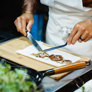 Máme tu čtyři kuchaře a stážistu. Číšníci na servisu jsou také kuchaři. Občas musí uvařit omáčku a dokončit jídlo s kuchaři.