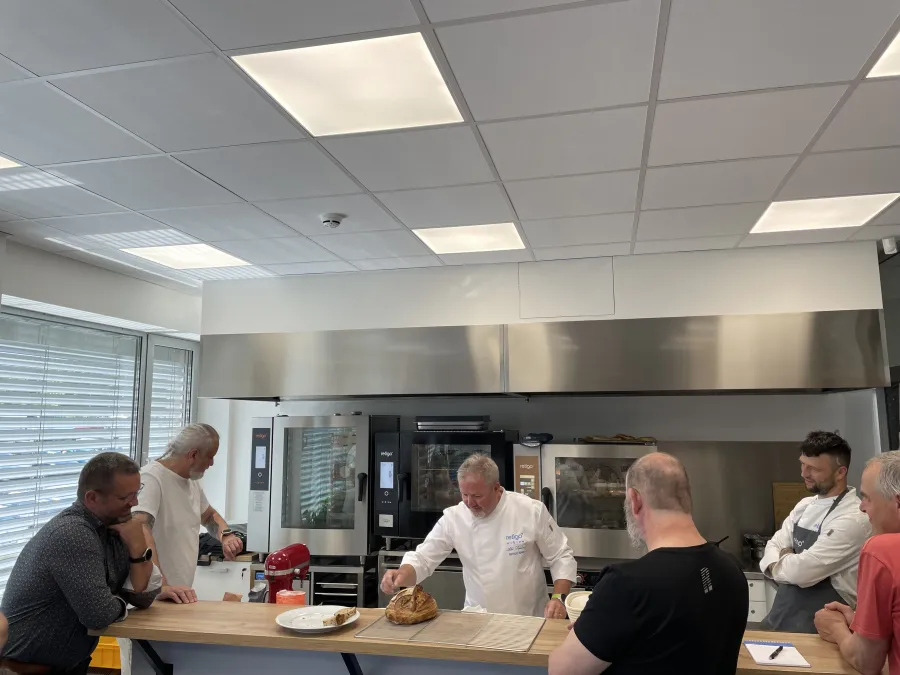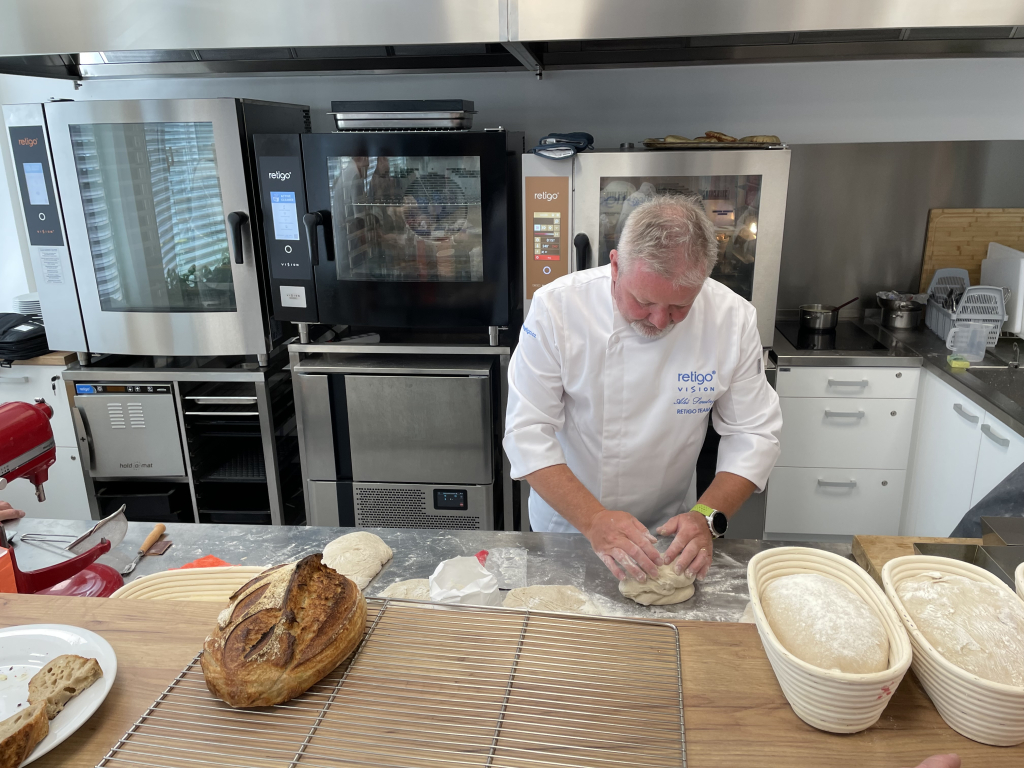 Zatímco dozlatova vypečené bochníky už čekaly na vychladnutí a rozkrájení, vyměňovali si přítomní zkušenosti ze svých provozů. Po ochutnávce, která naplnila voňavé očekávání, se všichni vydali do výroby, aby si prohlédli, jak a kde vznikají konvektomaty Retigo, které jim v jejich úsilí už dlouhá léta pomáhají.
