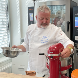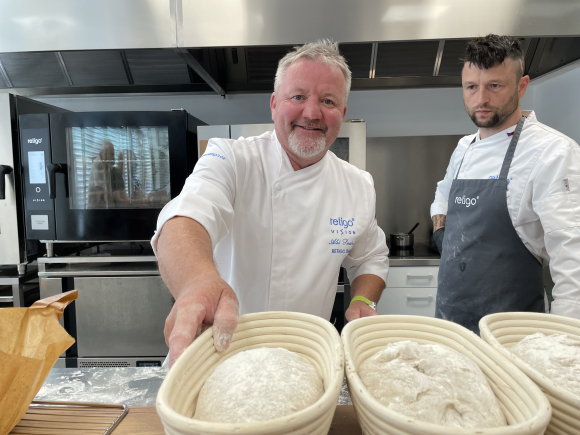 Pečení chleba přihlíží zástupci školní jídelny z Rychnova nad Kněžnou, která působí ve dvou provozech a dohromady uvaří přes dva tisíce obědů denně. Její strategií je neobjednávkový systém, jak mezi školními, tak cizími a firemními strávníky, kteří v jídelně obědvají nebo si odnesou zavakuovaný oběd s sebou. Výhodou je, že si z čerstvě uvařených a vystavených jídel vyberou to, na které mají zrovna chuť. Kuchaři vaří dvě až tři menu a u počtu porcí vychází ze statistik. V obou kuchyních všestranně využívají devět konvektomatů Retigo. Oblíbený je program na noční vaření, ale také pečení a uzení. Rychnovská jídelna se též nebojí inovací jak ve stravování samotném, tak ve vylepšování zázemí kuchyně a jídelny. „Jsme jediná školní jídelna, která má svou zahrádku. Děti si tam rády sedají. V jednom provozu máme i venkovní výdejové okénko,“ uvádí ředitel jídelny Tomáš Mitlehner a doplňuje: „Sledujeme gastro trendy a naším cílem je bohatá škála menu, kterou obměňujeme, aby si mohl vybrat opravdu každý.“ I v Rychnově si k vybraným pokrmům pečou vlastní chleba, takže pro ně „workshop“ vedený jabloneckými kolegy představoval zajímavý program.