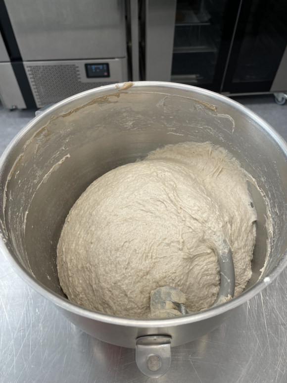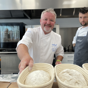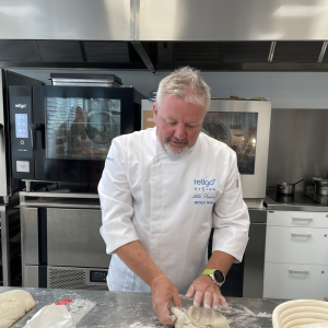 Každou středu jsou k dispozici dva salátové bary, z nichž si děti mohou vybrat a samy nabrat, co mají rády a na co mají chuť. Záměrem je naučit děti neplýtvat jídlem. K salátům je podáván čerstvý chleba, upečený v konvektomatech Retigo. „Pečeme třicet pět kilových bochníků každou středu. Ale často to střídáme. Pečeme i focacciu, bagety, ciabatty,“ sdělil vedoucí Fiala. A právě vyhlášený kváskový chleba šéfkuchaře Aleše Smutného byl předmětem přátelského setkání obou jídelen s ukázkou pečení. „Proces je dlouhý. Příprava trvá třeba pět hodin, i s překládáním a kynutím,“ zmiňuje šéfkuchař a překládá u toho těsto. Kvůli časové náročnosti ukazuje v našem showroomu navíc i přípravu kváskového chleba s přídavkem droždí, které kynutí urychlí.