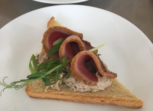 Uzená kachní prsa na pečeném toastu s kachním rilletem