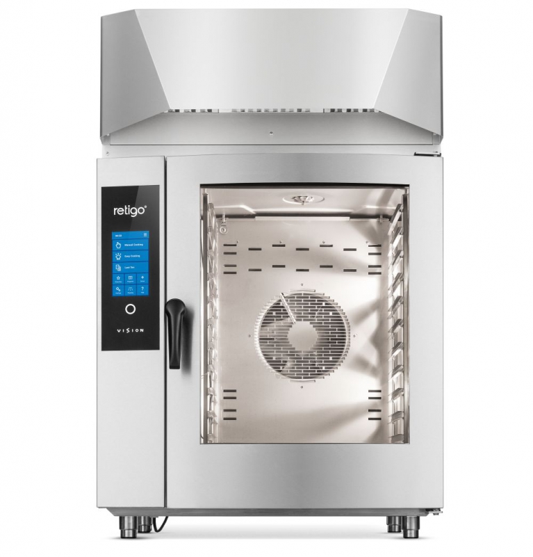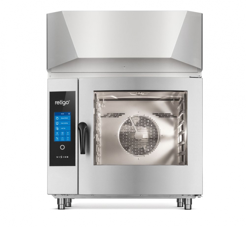 Kondenzační odsavač par RETIGO Vision Vent RPH0610 je určen pro elektrické konvektomaty Blue Vision 611 nebo 1011 a Orange Vision 611 nebo 1011. Kondenzační digestoř Vision Vent se vyznačuje jednoduchou montáží, minimální spotřebou elektrické energie (připojení buď přímo do zásuvky na 230 V a nebo přes silový panel konvektomatu) a plně automatickým provozem. Vision Vent není kompatibilní s plynovou variantou konvektomatu Vision 611 ani 1011.