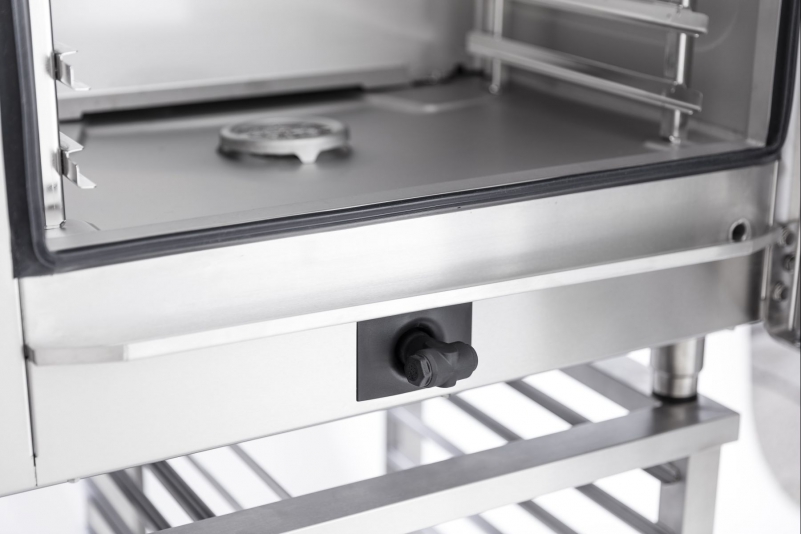 U konvektomatů 611 a 1011 je sprcha umístěna pod varnou komorou a je viditelná po otevření dveří.
