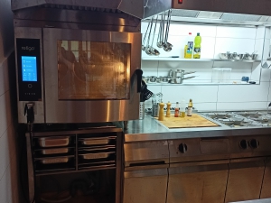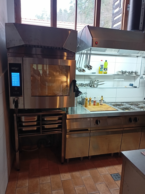 Pro zajištění vysoké kvality pokrmů využívá kuchyně konvektomat Retigo Blue 611, který je ideální pro přípravu jídel s vysokými nároky na přesnost a efektivitu. Tento model umožňuje přípravu až 150 jídel a je doplněn kondenzační digestoří Vision Vent RPH0610, která zajišťuje optimální odvod par a tepla. Díky tomu kuchařský tým v Hlučově snadno zvládá složité techniky vaření, jako je příprava degustačních menu s maximální kvalitou.