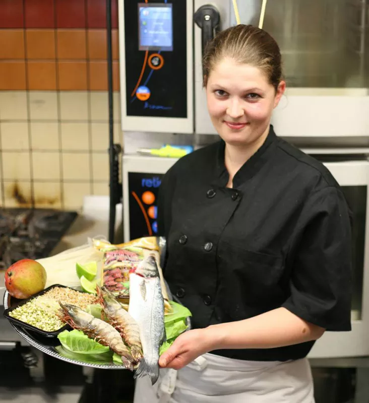 ► Konvektomaty využíváme k přípravě všech pokrmů z naší nabídky od vaření, pečení, konfitování mas přes přípravu veškerých příloh až po pečení vlastního pečiva. Holdomat využíváme pro dlouhodobé nízkoteplotní pečení.