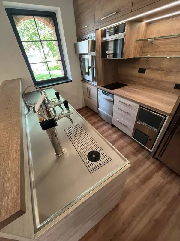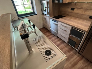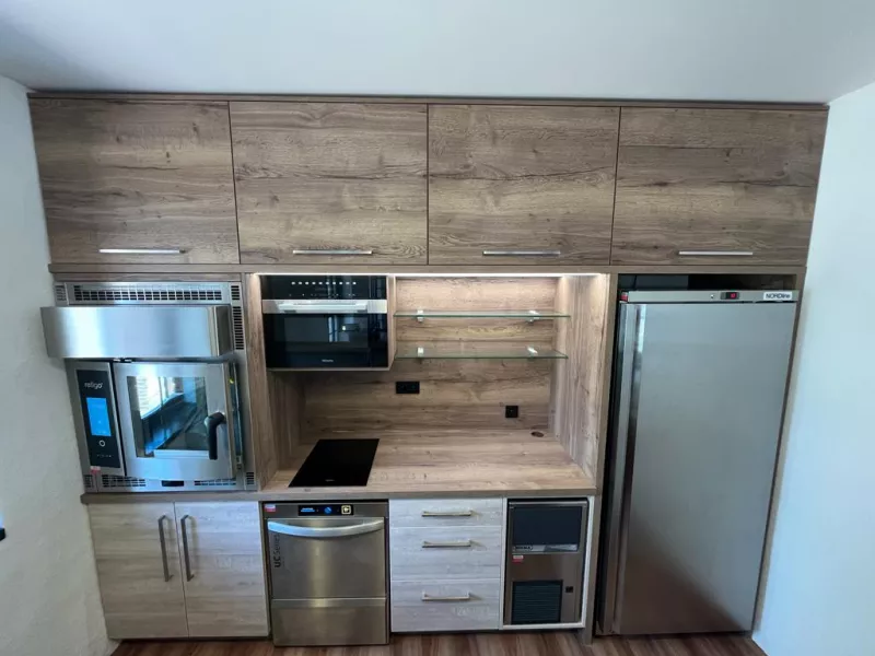 Pro profesionální cateringové zázemí je zde multifunkční stodola, vybavená špičkovým konvektomatem Retigo Blue 623i, který je základem každodenní přípravy pokrmů na vysoké úrovni. Tento přístroj umožňuje rovnoměrné pečení, vaření a grilování, a to i při vysoké kapacitě, což zajišťuje efektivitu a konzistenci při přípravě jídel pro větší akce.