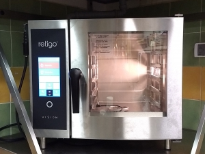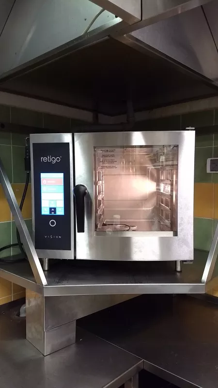 V kuchyni hotelu najdete konvektomat Retigo Blue 623i, ideální pro přípravu širokého spektra pokrmů. Tento kompaktní přístroj je známý svou vysokou efektivitou, úsporou energie a jednoduchým ovládáním, což zajišťuje spolehlivý provoz i v náročném prostředí hotelových kuchyní. Retigo Blue 623i umožňuje pečení, vaření v páře, grilování a vaření sous-vide, což přispívá k vynikající kvalitě jídel a zkracuje čas přípravy. Je ideální pro menší a střední kuchyně, kde je prostor omezený.