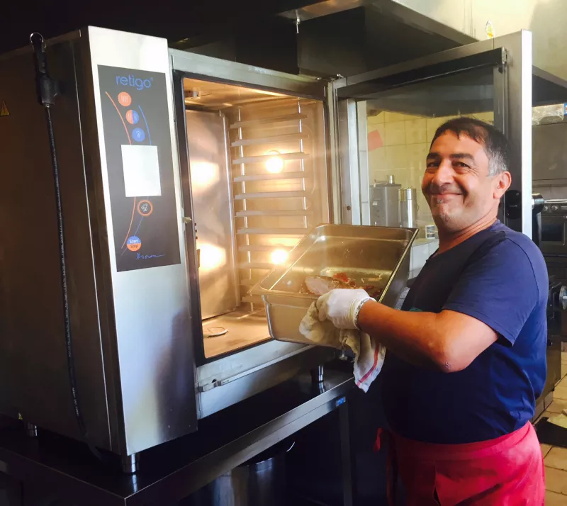 „Jsem naprosto spokojený,“ říká šéfkuchař v osobním rozhovoru. „Kombinovaný parní konvektomat Retigo je spolehlivý, rychlý a opravdu snadno ovladatelný.“