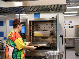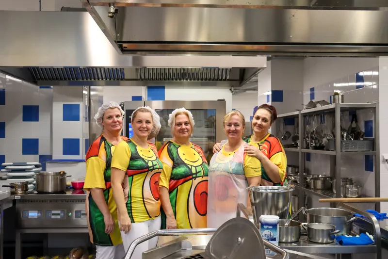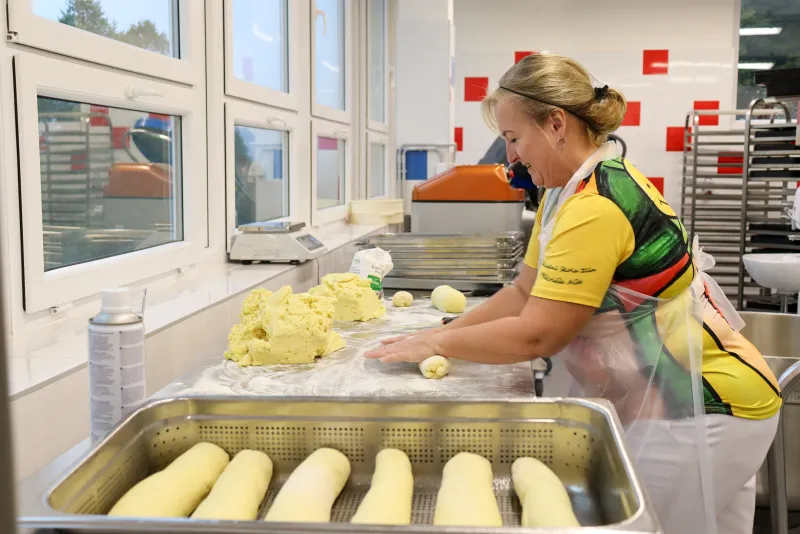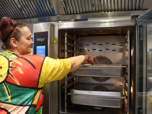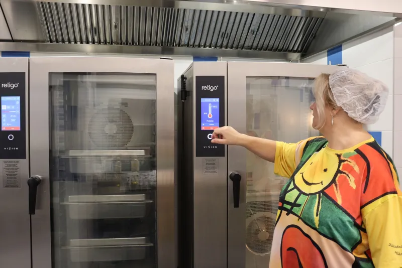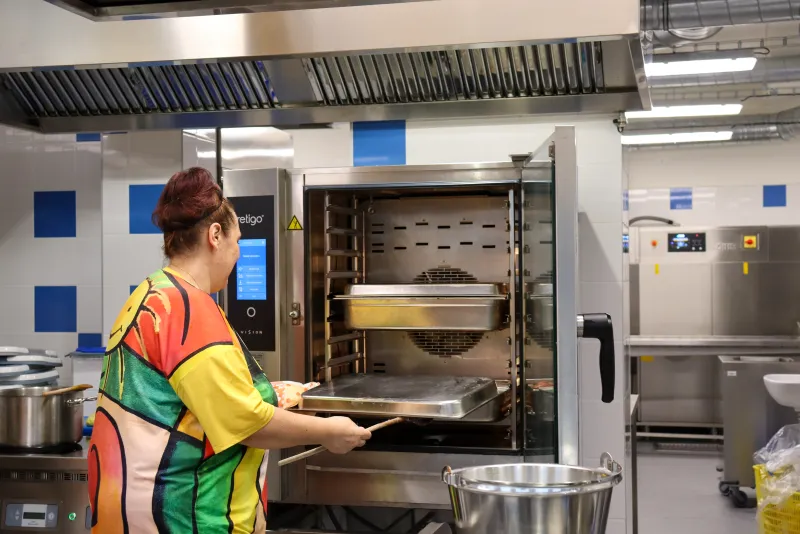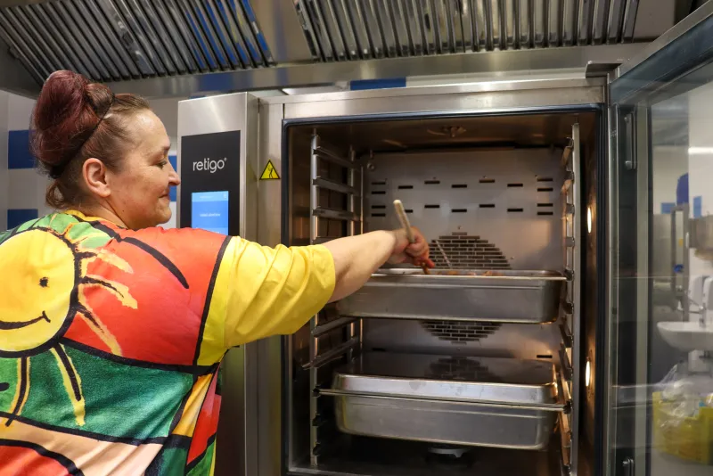 Ano, grilování. Grilujeme lososa například. Teď jsme dělali i 140 kg opékaných brambor. Opékaly jsme je po třetinách, paní kuchařce to i s vychystáváním zabere celé dopoledne. Když třeba v konvektomatu děláme sladké kynuté knedlíky, vycházíme z 35 kg mouky. Časově je to také náročné, než všechno připravíme, začínáme třeba o půl paté. Ale pak nastavíme konvektomat a už se o nic nemusíme starat. Není to jako dříve, když se knedlíky připravovaly v kotli a musely se otáčet, vytahovat a propichovat. A s výsledkem jsme maximálně spokojeni. Knedlíky jsou krásné.