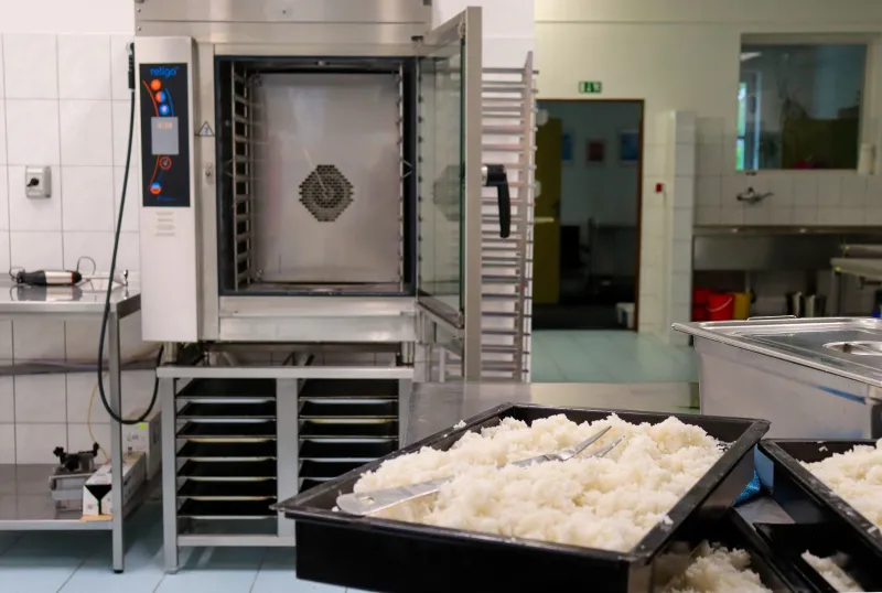 Usnadnění fyzické práce. Je to rychlé a přesné. Paní kuchařka si to může naplánovat, aby při vydávání obědů, které máme nastavené podle rozvrhu, měla postupně připravena čerstvá jídla, jež nebudou například vysušená. Jednoduše si odběhne, konvektomat zapne, a dál se nemusí starat.
